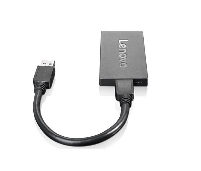 LENOVO USB to DisplayPort Adapter - Maximum Resolution 3840x2160@30Hz, Connects USB Enabled Systems to DisplayPort Monitor/Projector Product Description The Lenovo USB 3 to DP Adapter delivers combined video and audio over a single USB port to a DP display. This adapter is unique in that it provides a spectrum of resolutions at high speeds all the way to 4K*. Connect up to 6 monitors (one adapter per monitor) at high resolutions. Ideal for end customers wanting a 4K* solution for conference room displays, digital signage, or to enable an existing PC to support DP displays up to the latest 4K* monitors. Top Features High quality with low latency Can enable up to 6 USB displays (one adapter per monitor) USB bus power (no external power supply) Max 3840x2160@30Hz 4K*output Backward compatible with QHD and HD monitors DP 1.1 interface (DisplayPort) Integrated DisplayPort Audio Note: Adapter is backwards compatible with USB 2.0, but in most cases performance above 1080P over USB 2.0 will likely be unsatisfactory. Note: Depending on many factors such as the processing capability of the host and peripheral devices, file attributes, and other factors related to system configuration and operating environments, the actual data transfer rate will be slower than 5 Gbit/s on USB 3.1 Gen 1 (USB 3.0) connectors, slower than 10 Gbit/s on USB 3.1 Gen 2 connectors, and slower than 20Gbit/s on USB 3.2 connectors.